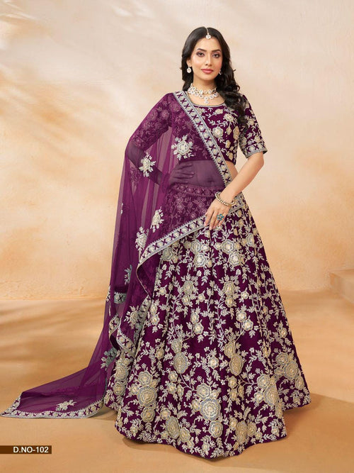 Chinon Silk Lehenga Choli, Multi Thread Sequins Work, Wedding Bridal Party Wear Net Dupatta